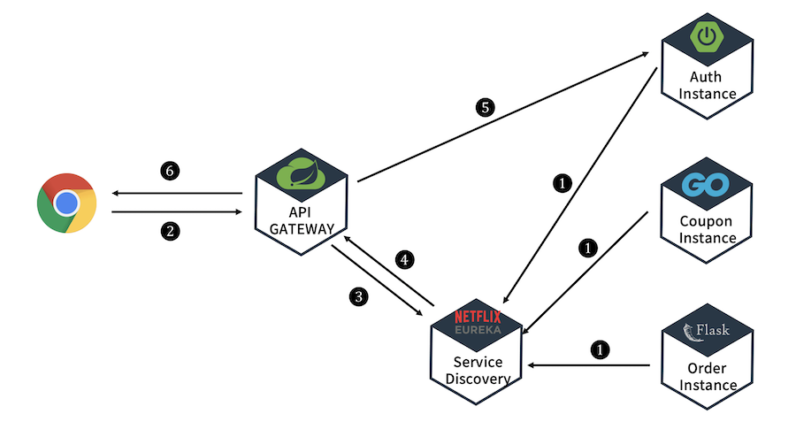 - โขโฃ: API ๊ฒ์ดํธ์จ์ด์์ ๋ฐ์ ๋ก๊ทธ์ธ ์์ฒญ์ ์ด๋ค ์ธ์คํด์ค์์ ์ฒ๋ฆฌํ ์ ์์์ง ์๋น์ค ๋์ค์ปค๋ฒ๋ฆฌ์์ ์ฐพ๋๋ค.
