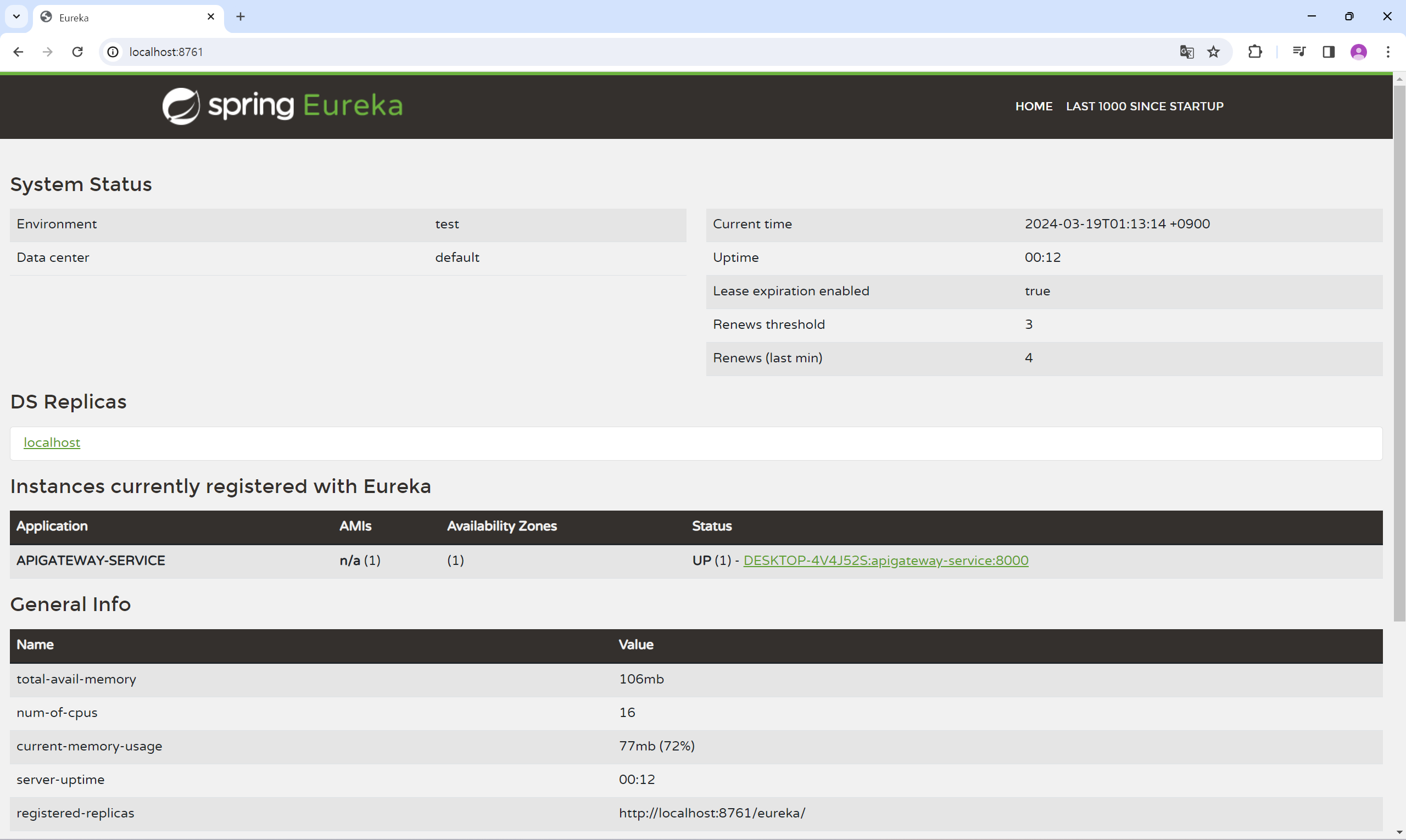 API Gateway์ Eureka ์๋ฒ ์ฐ๋ ํ๋ก์ธ์ค