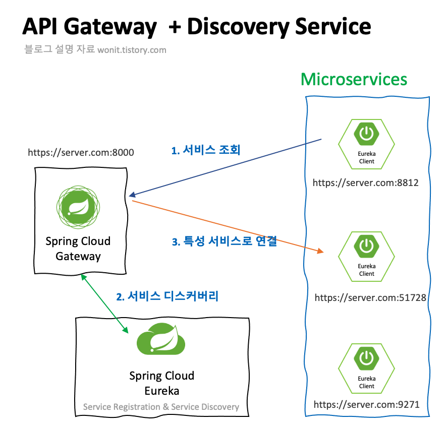 ๋ฐ๋ผ์ Eureka ์๋ฒ๊ฐ ํด๋น ๋ชฉ๋ก๋ค์ ๊ด๋ฆฌํ๋ฉฐ Gateway์๊ฒ ์ ๋ฌํ๋ค.