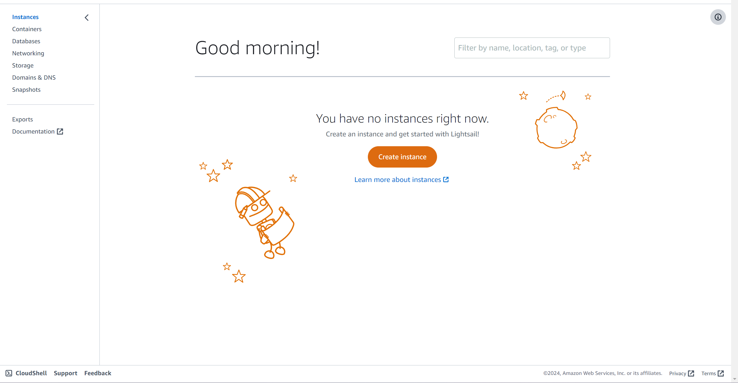 AWS에 로그인을 하고 Lightsail을 누르면 아래의 창이 나타난다.
