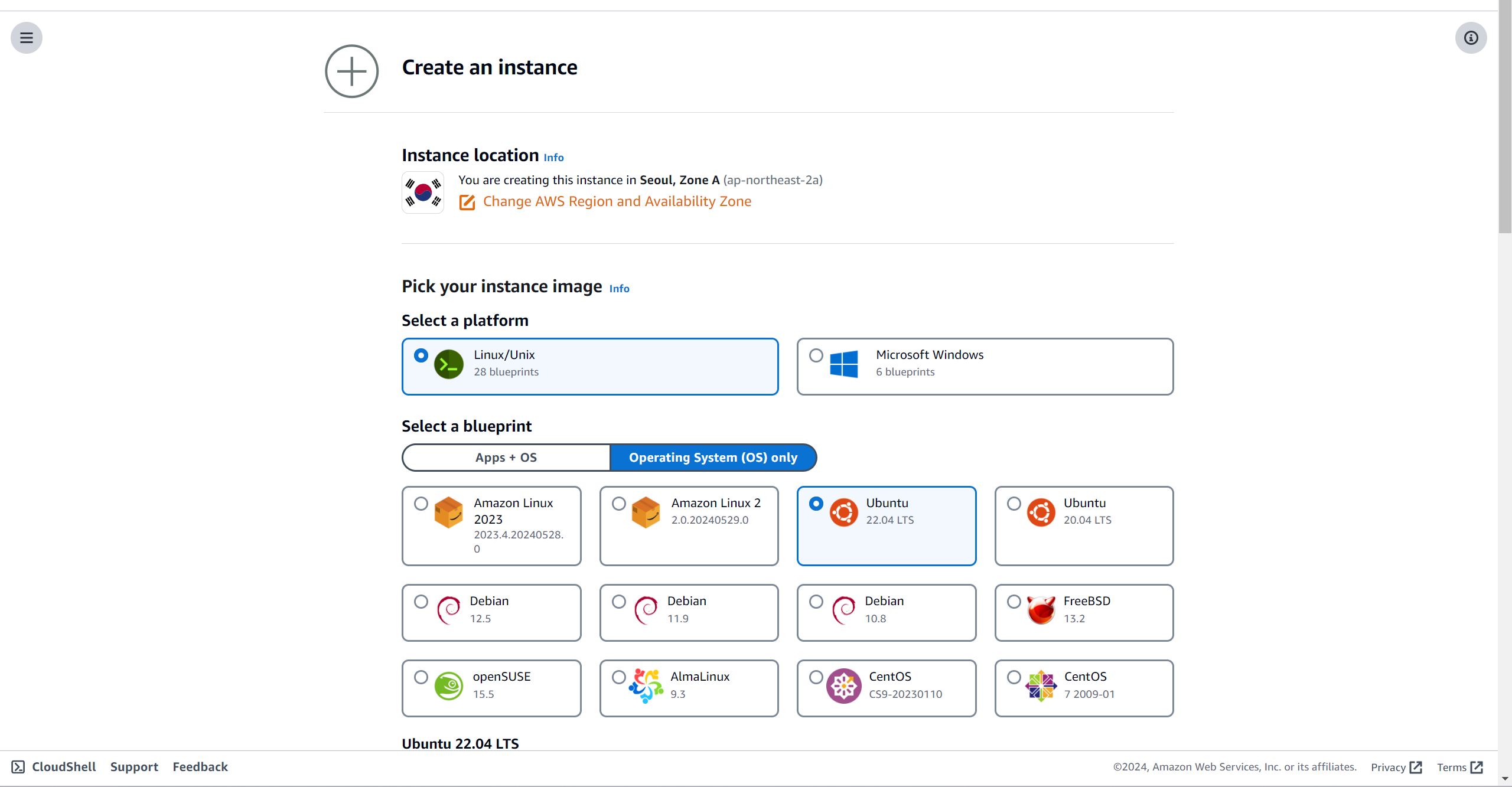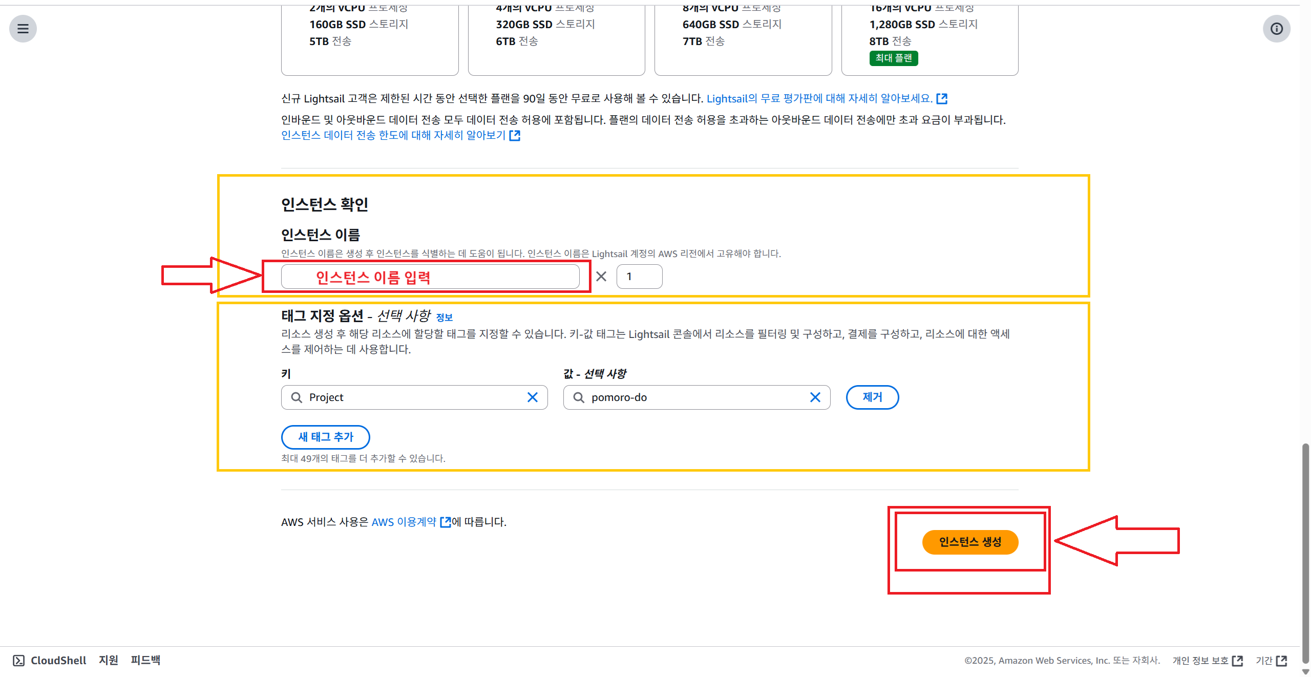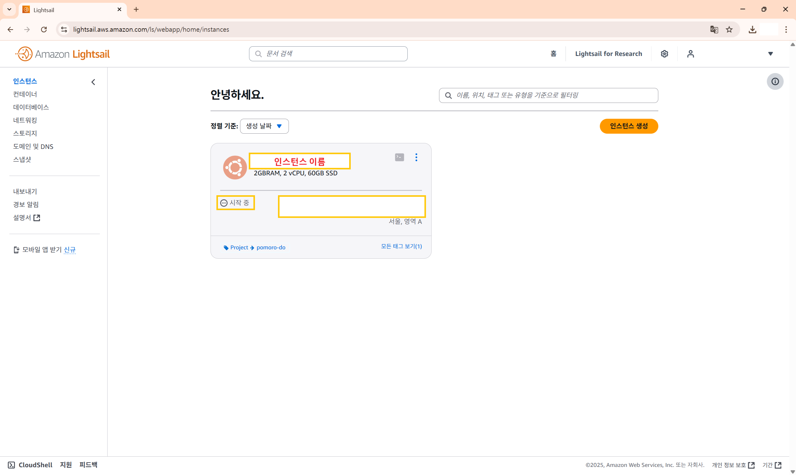 Amazon Lightsail 인스턴스 생성하기
