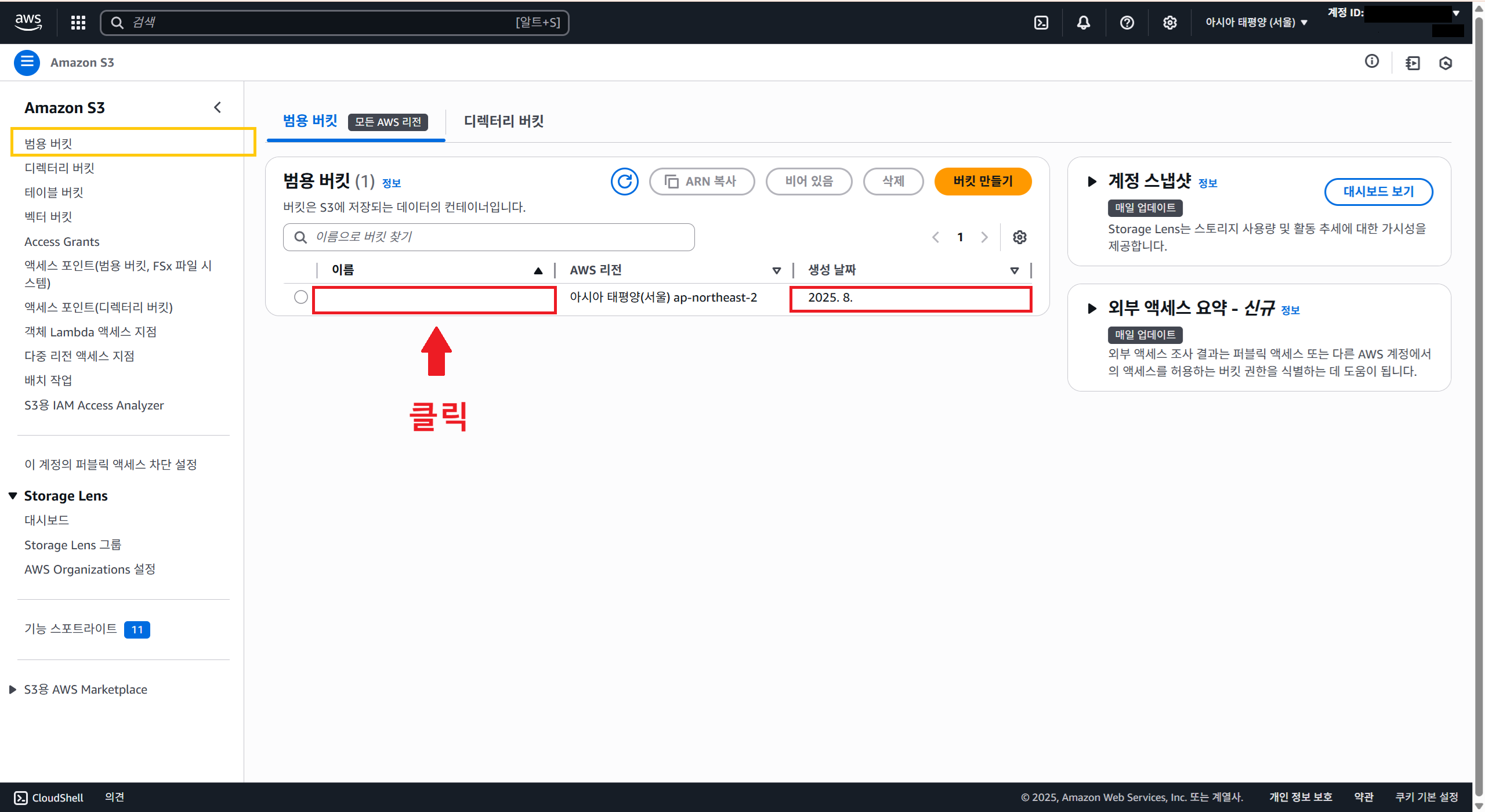 1️⃣ S3 콘솔 접속 및 버킷 선택