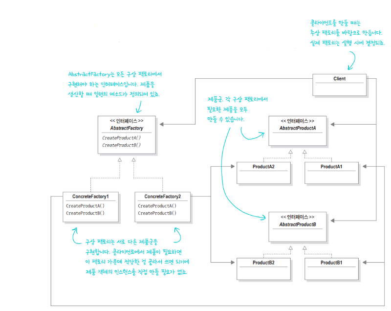 구체적인 클래스를 지정하지 않고 관련성이 있거나, 독립적인 객체들을 생성하기 위한 인터페이스를 제공하는 패턴이다.