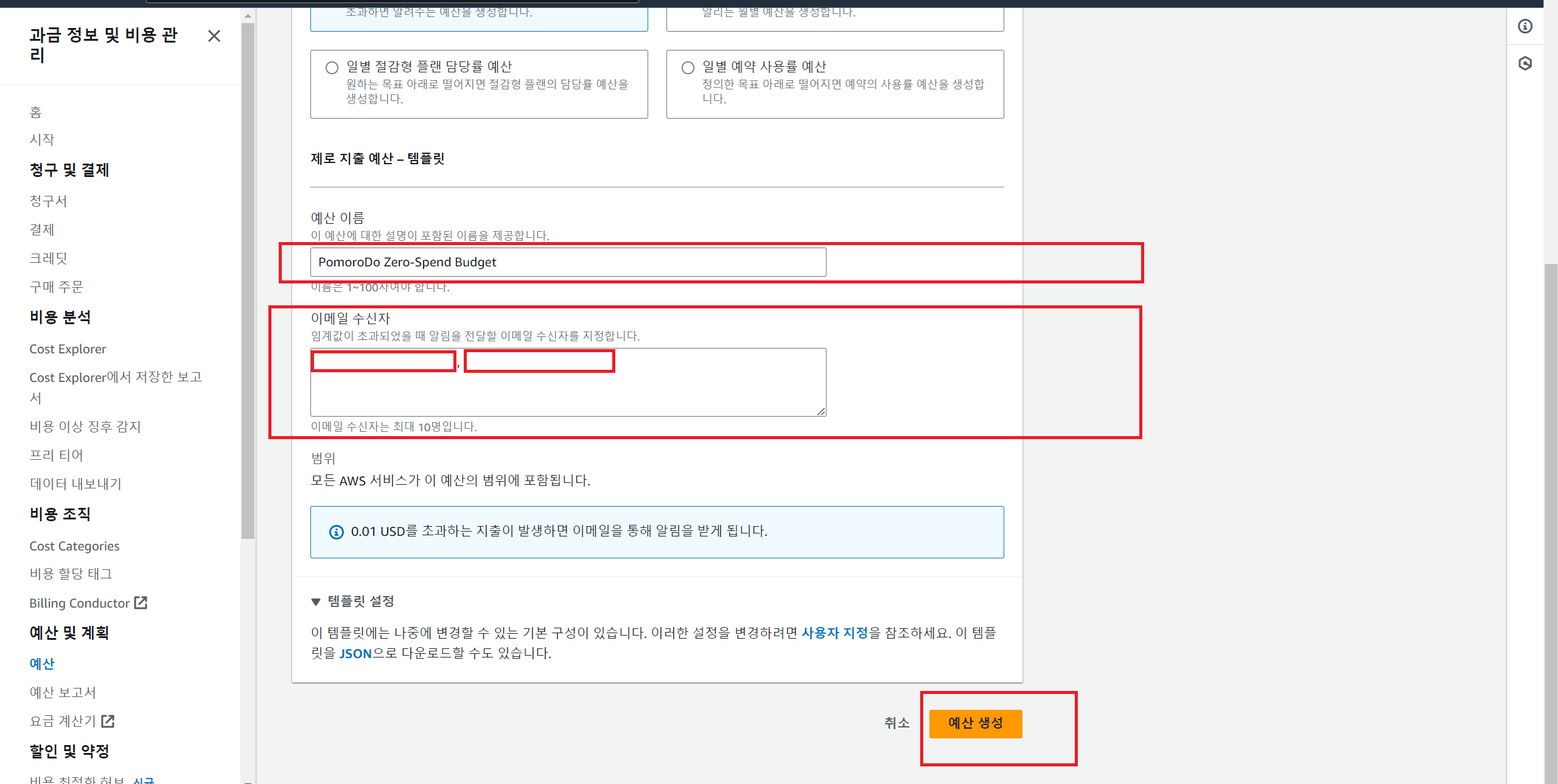 1. 서비스 > AWS 비용관리 > AWS Budgets