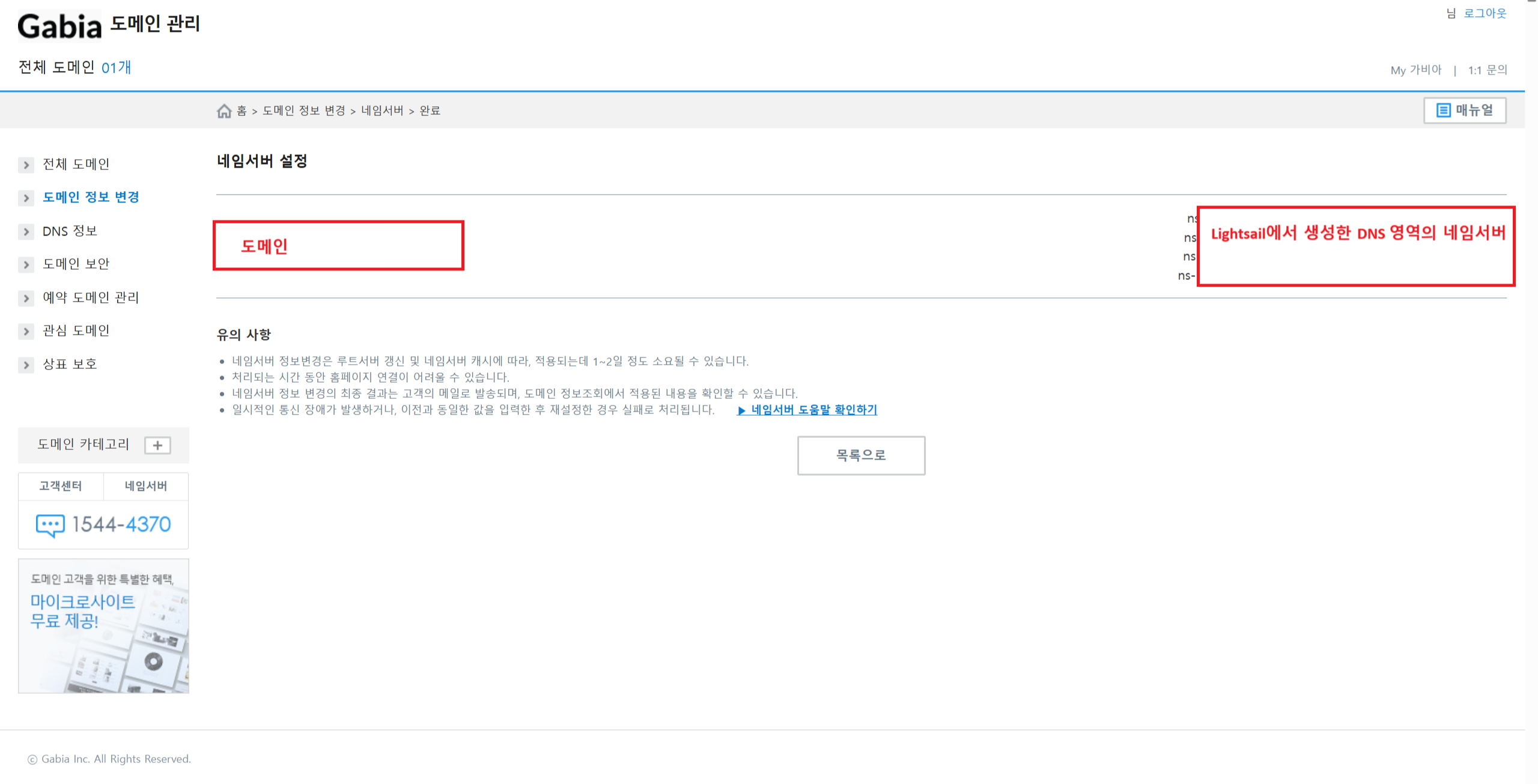 AWS에서 제공한 네임서버로 변경해야 브라우저가 내 도메인을 입력했을 때 Lightsail 서버의 IP를 찾아올 수 있습니다.