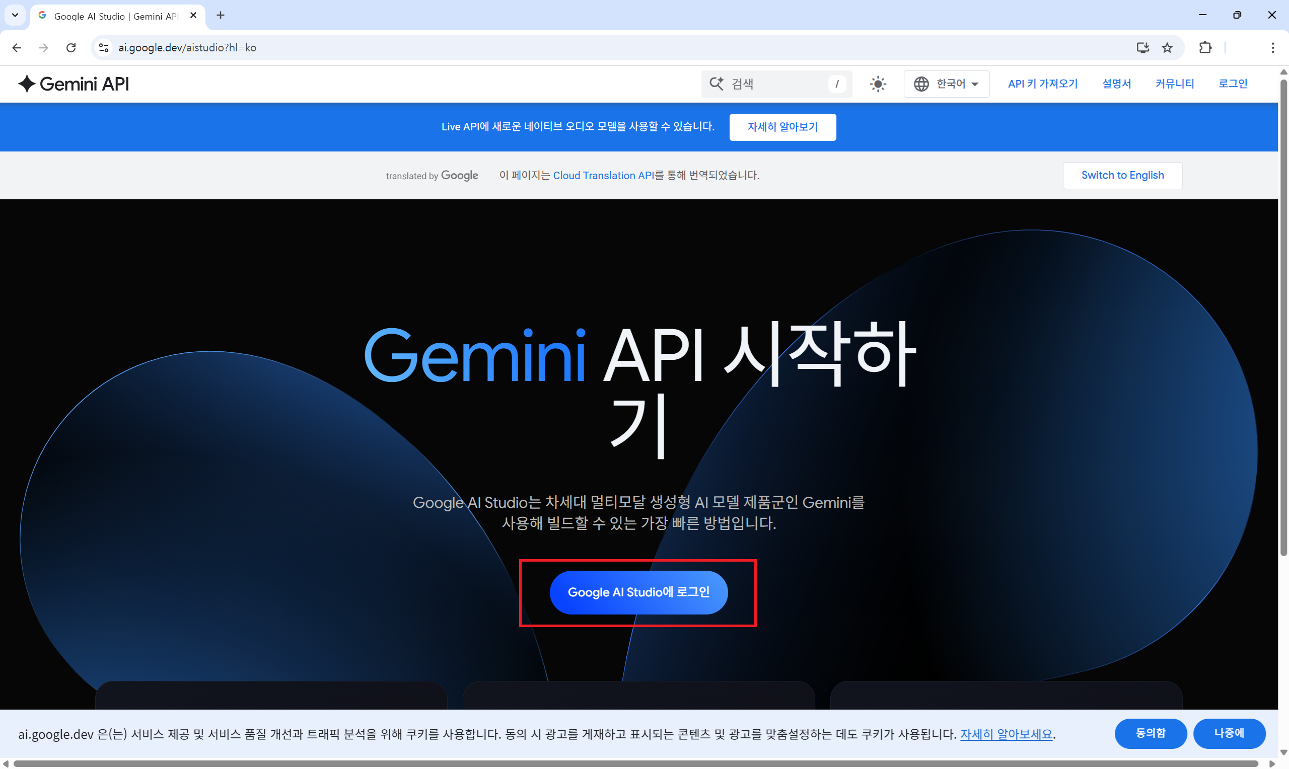 1. Google AI Studio 홈페이지 접속합니다.