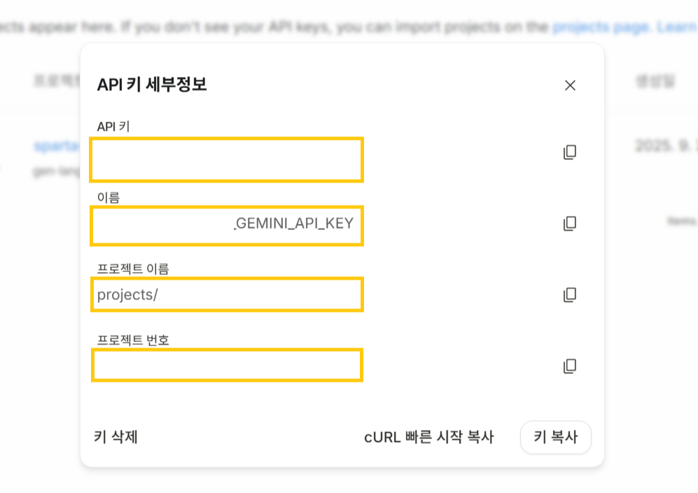 이제 Gemini API 키 발급이 완료되었습니다.