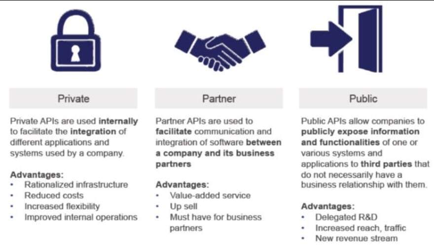 API를 기업이나 연구 단체 등에서 사용하는 다양한 애플리케이션과 시스템의 통합을 위해 사용하는 것으로 단체 내부에서만 사용할 수 있도록 하는 것이디.