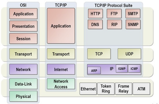 - 실제 사용되는 TCP/IP는 OSI 참조 모델을 기반으로 상업적이고 실무적으로 이용될 수 있도록 단순화된 모형이다.