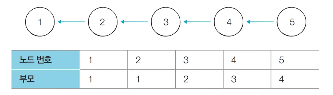 - 기본적인 형태의 서로소 집합 자료구조에서는 루트 노드에 즉시 접근할 수 없습니다.