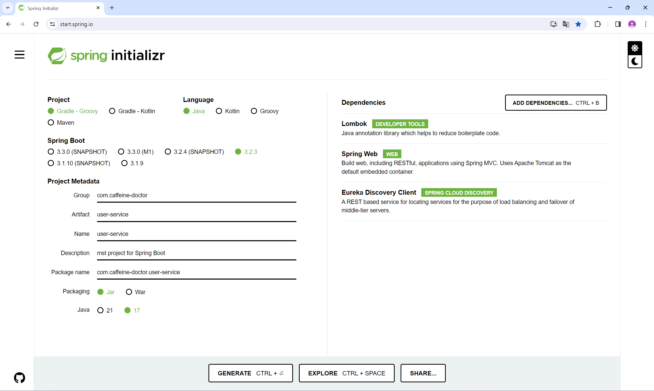 Spring Initializrλ₯Ό μ¬μ©νμ¬ λ§μ΄ν¬λ‘μλΉμ€ νλ‘μ νΈλ€μ μμ±ν΄ μ€λ€.